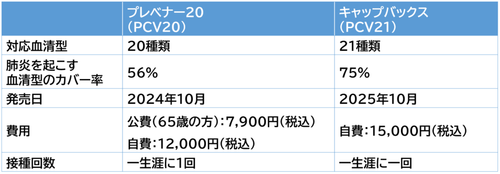 当院では、4月から以下2種類の肺炎球菌ワクチンを取り扱っております。